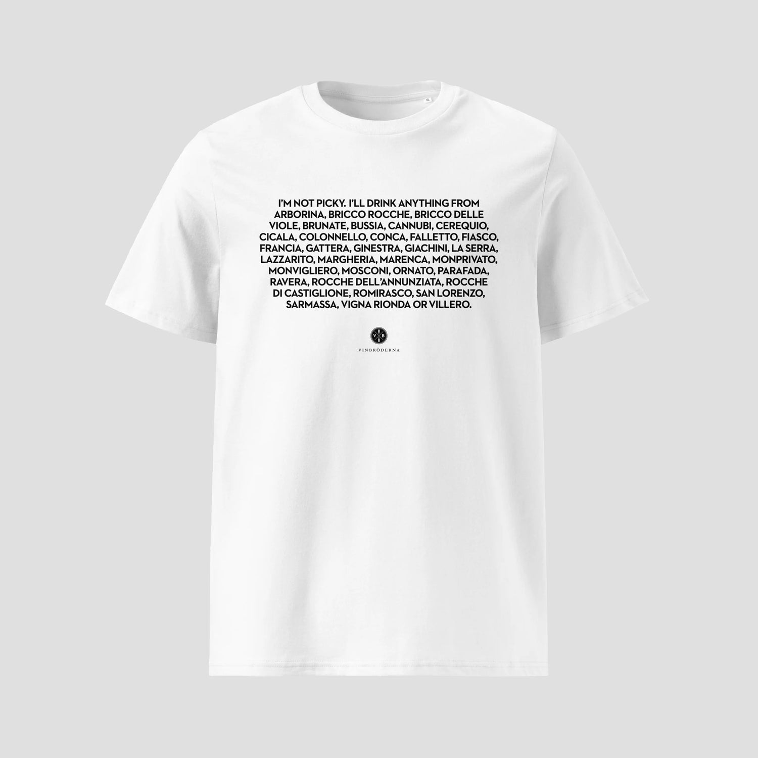 Originally intended as gifts for the Barolo and Barbaresco producers we love and visited, the "I'm not picky" T-shirt series has evolved into a highly popular item among our followers - and beyond.